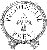 All titles, wrappers. Indexed, unless otherwise noted. Louisiana residents are obliged to add four percent sales tax. East Baton Rouge Parish residents are obliged to add an additional five percent sales tax. Add $2.50 first book, $0.50 each additional book per order for shipping by Media Mail (economy mail 2-3 weeks for delivery). For faster delivery, Parcel Post Priority or Fedex Ground is available for $5.50 first book, $0.75 each additional book per order. Customers from outside the continental United States should contact Provincial Press for cost of shipping. Canadian customers should add $12.50 US for Priority shipping. All payments, other than credit cards, are to be in US dollars only; international money order, or check drawn on a United States bank. A telephone number is also required for shipments to Canada. Note, we are not responsible for custom import charges. Customers using PayPal have options during check-out. Purchase-orders from libraries and other tax-exempt institutions are honored, by e-mail or otherwise. We accept credit cards only via our web-site catalogue provided in coöperation with PayPal in a safe and secure environment, and may be used by members and non-members of PayPal. All titles, wrappers. Indexed, unless otherwise noted. Louisiana residents are obliged to add four percent sales tax. East Baton Rouge Parish residents are obliged to add an additional five percent sales tax. Add $2.50 first book, $0.50 each additional book per order for shipping by Media Mail (economy mail 2-3 weeks for delivery). For faster delivery, Parcel Post Priority or Fedex Ground is available for $5.50 first book, $0.75 each additional book per order. Customers from outside the continental United States should contact Provincial Press for cost of shipping. Canadian customers should add $12.50 US for Priority shipping. All payments, other than credit cards, are to be in US dollars only; international money order, or check drawn on a United States bank. A telephone number is also required for shipments to Canada. Note, we are not responsible for custom import charges. Customers using PayPal have options during check-out. Purchase-orders from libraries and other tax-exempt institutions are honored, by e-mail or otherwise. We accept credit cards only via our web-site catalogue provided in coöperation with PayPal in a safe and secure environment, and may be used by members and non-members of PayPal.